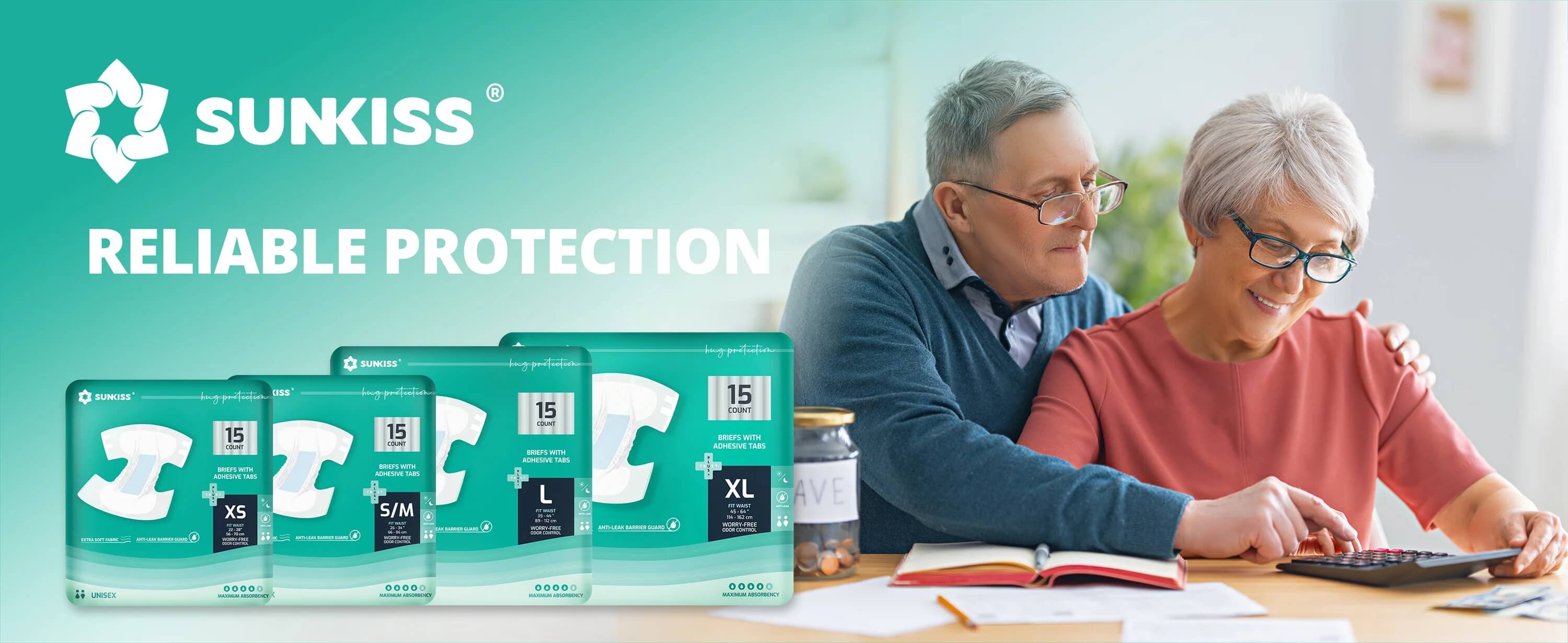 SUNKISS Super-Absorbent Adult Diaper Disposable With Tabs, Unisex